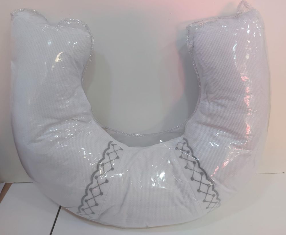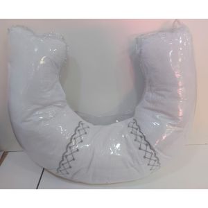 A almofada de amamentação da linha Baby Joy Premium é confeccionada em tecido de fustão ,100% algodão, com aplicação de uma delicada tira bordada. A capa da almofada é removível com zíper, para facilitar a troca e higienização.