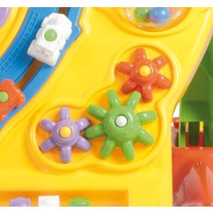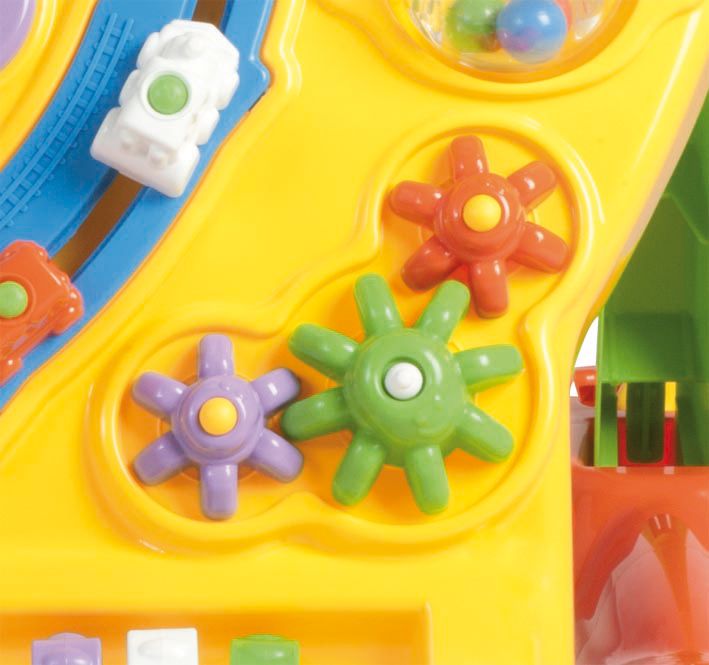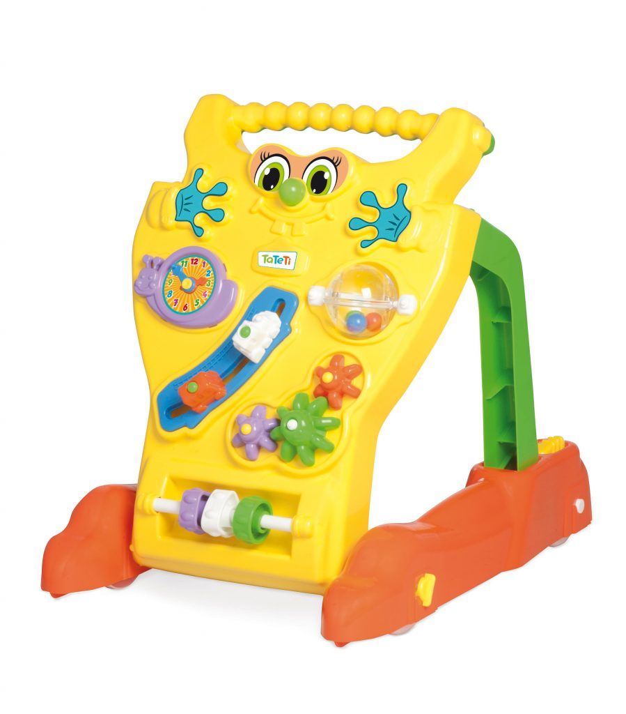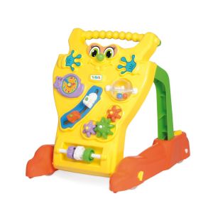 Brinquedo 2 em 1, é um andador e um centro de atividades que encanta com seus detalhes. Com relevos e diversas interações, como pecinha para girar com barulhinho de “creck-creck”, trenzinho deslizante e chocalho. O andador foi desenvolvido pensando na segurança das crianças. Possui um sistema que trava as rodas dianteiras, caso o andador seja puxado para trás. Sua base ampla garante maior segurança e também transmite mais confiança, possibilitando um apoio firme para o bebê caminhar.