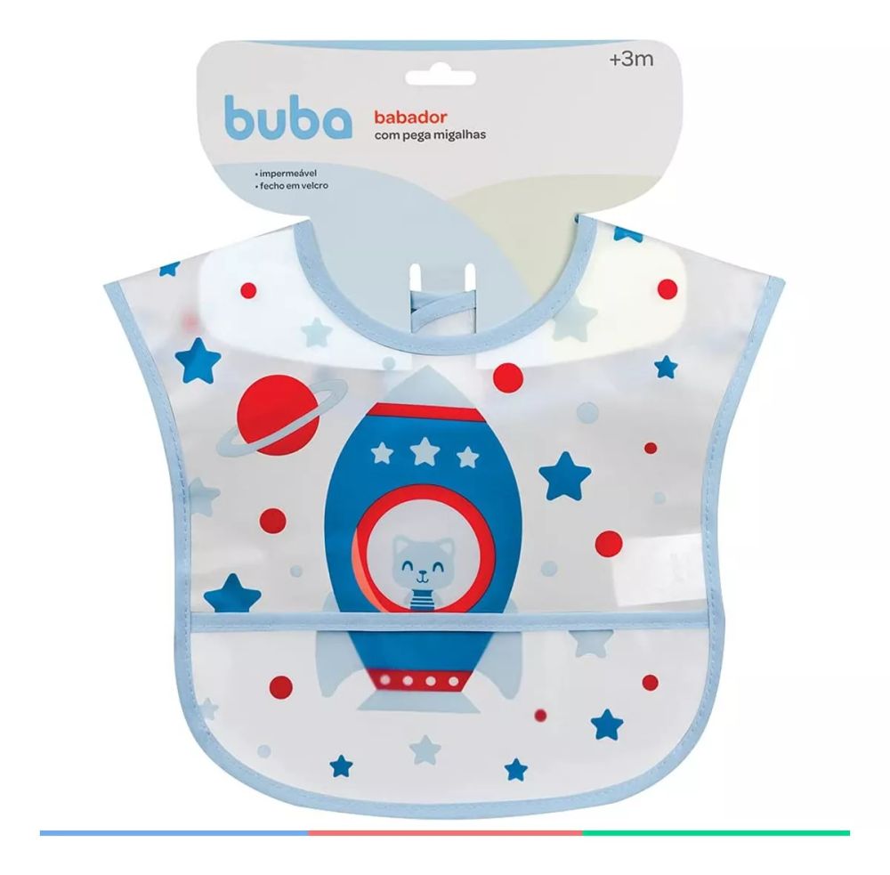 O BABADOR DA BUBA É SUPER PRÁTICO E HIGIÊNICO. POSSUI BOLSO PEGA MIGALHAS, IDEAL PARA PROTEGER A ROUPINHA DO BEBÊ. O FECHO COM BOTÕES SE AJUSTA FACILMENTE AO PESCOÇO DO PEQUENO.