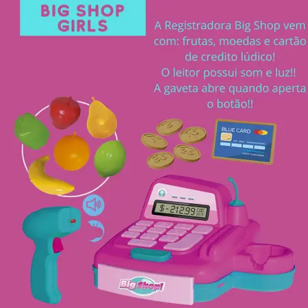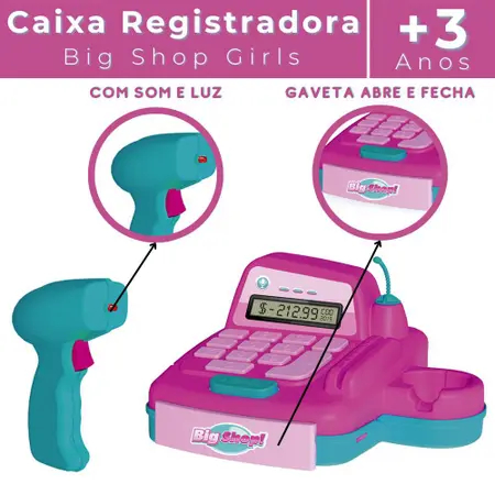 A criançada irá se divertir fazendo compras com esta super caixa registradora. Vem com vários acessórios, contém som e luz no leitor.