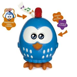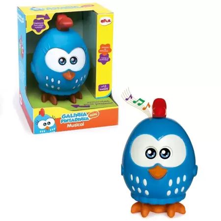 - Na sua crista, ao apertar, a Galinha Pintadinha Mini toca uma música e também faz pópópó para seu bebê aprender a cantar junto com ela.