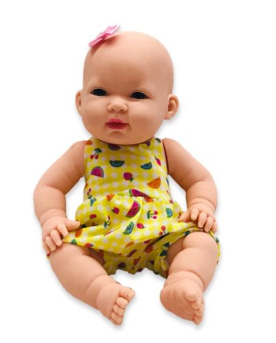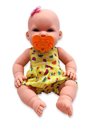 - Vem com um adorável vestidinho amarelo e uma linda chupeta