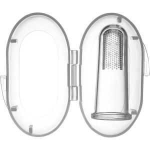 • É macio, atóxico, também auxilia na limpeza bucal e ainda vem com um case para guardá-lo