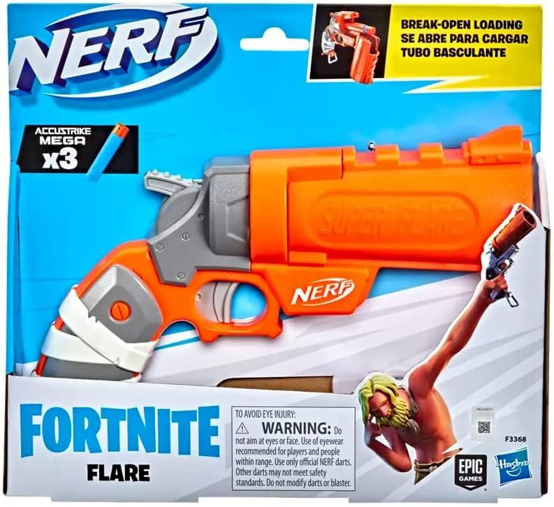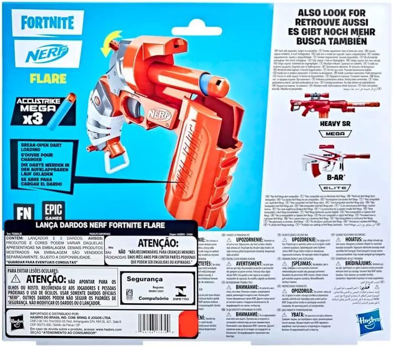 - O lançador Nerf Fortnite Flare inclui 3 dardos Nerf de espuma, testados e aprovados para performance e qualidade