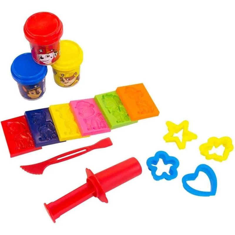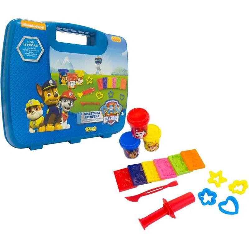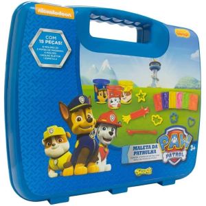 Agora com a Maleta divertida da Patrulha Canina a brincadeira ficará muito mais prática e divertida . Com 3 potes de massinha de 56,70 gr cada e 12 acessórios plásticos.