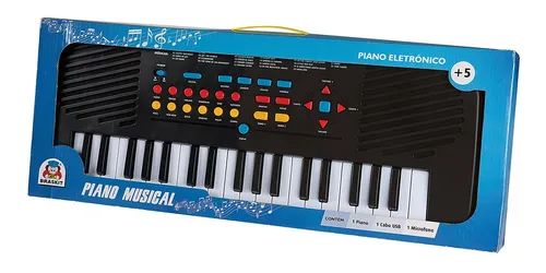 Piano que reproduz várias músicas, efeitos, ritmos e sons.