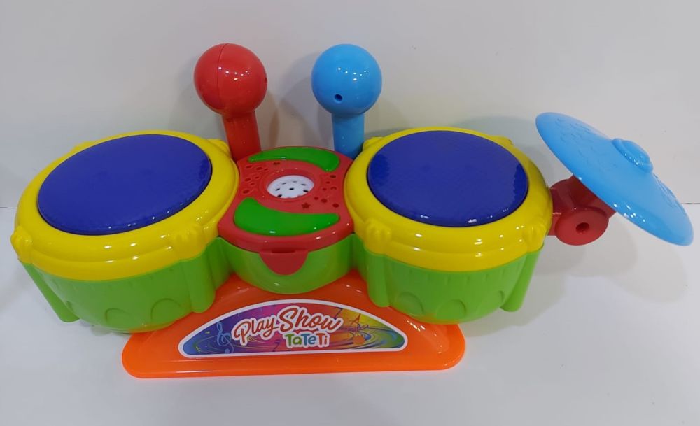 É hora do show! Chame a família para a sala e preparem-se para os estímulos do desenvolvimento da expressão rítmica, melódica e criativa. Os Brinquedos Educativos com funções musicais estimulam a fala e ajudam a discernir os sons desenvolvendo percepções auditivas e rítmicas, além da comunicação e expressão desde cedo. A Bateria Play Show, da Tateti tem luzes e som que imita uma bateria e verdade. Para dar um show no mundo do faz de conta, tem 3 peças para brincar de tocar os tambores com as mãos, ou com o par de baquetas removíveis com chocalho e desenvolver a coordenação motora fina.