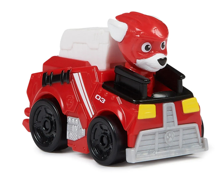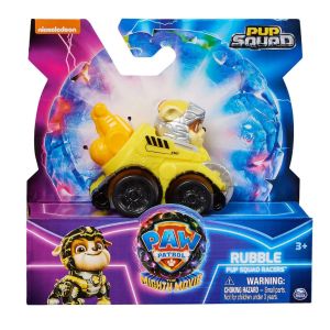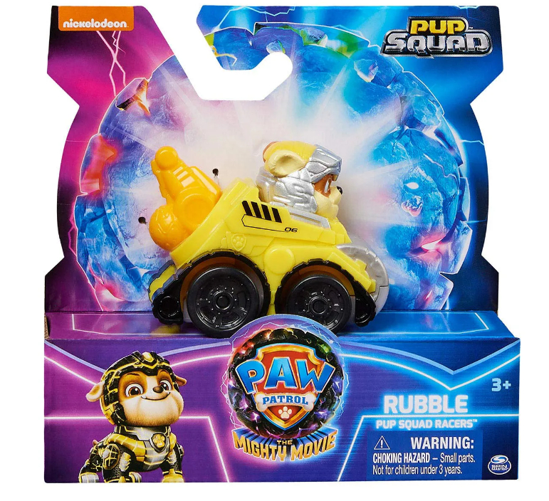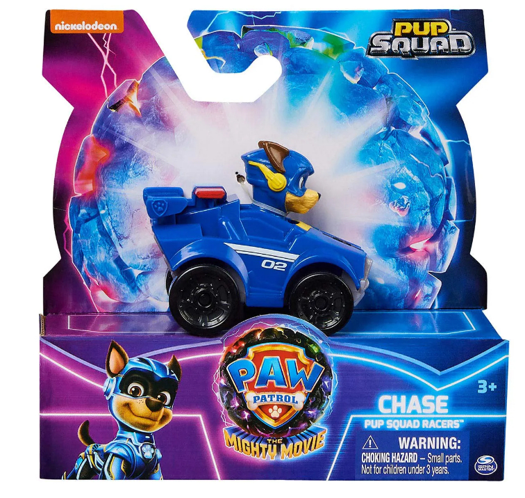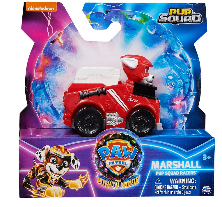 Corra para o resgate com os carrinhos Pup Squad Racers do novo filme "Patrulha Canina: Um Filme Superpoderoso"! Cada carro de corrida Pup Squad mede 5cm de altura e cabe perfeitamente na palma da sua mão ou no seu bolso, tendo tamanho perfeito para as crianças levarem para qualquer lugar! Cada filhote da Patrulha Canina está vestido com seu autêntico uniforme do filme e com as orelhas moldadas para trás, para que pareçam estar correndo a toda velocidade, assim como fazem nas telonas.